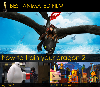 How To Train Your Dragon 2 over The LEGO Movie and Big Hero 6 in last month's Golden Globes, I'd say it's Toothless and Hiccup's competition to lose. I'll be happy to be wrong though.